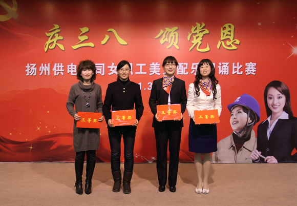 揚州供電公司女職工委員會3月4日下午舉辦“慶三八、頌黨恩——揚州供電公司女職工美文配樂朗誦比賽”活動。公司女職工選手以美文配樂朗誦的形式,向偉大的中國共產(chǎn)黨表達(dá)了由衷的熱愛。揚州供電公司黨委書記馬愛杰、工會主席吳鴻出席活動,揚州各縣公司工會主席、各基層分工會主席、女工委員、女職工代表90多人參加了這次活動。