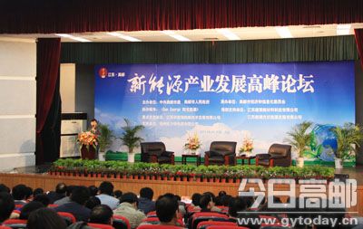 2011年4月14日上午,第七屆中國(guó)雙黃鴨蛋節(jié)暨撤縣設(shè)市20周年慶典活動(dòng)重頭戲之一——新能源產(chǎn)業(yè)發(fā)展高峰論壇在高郵會(huì)議中心召開(kāi)。丁一、夏正祥等高郵市領(lǐng)導(dǎo)出席活動(dòng)。中國(guó)可再生能源學(xué)會(huì)光伏專業(yè)委員會(huì)主任、太陽(yáng)能電池領(lǐng)域著名專家趙玉文,聯(lián)合國(guó)太陽(yáng)能中心主任、著名太陽(yáng)能情報(bào)專家喜文華,與高郵市部分黨政干部及數(shù)十家市內(nèi)外新能源企業(yè)共赴高峰論壇,共享陽(yáng)光盛宴,共謀產(chǎn)業(yè)新發(fā)展。