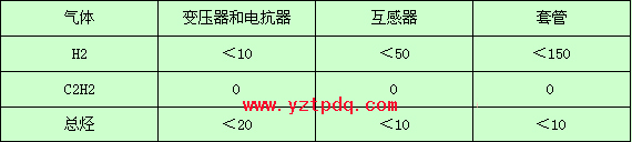 表2-2 對出廠和新投運(yùn)的設(shè)備氣體含量的要求