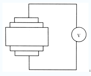 鐵芯兩點接地時的電壓如圖3所示。鐵芯在額定激磁電壓下,測量鐵芯兩端片間電壓時,發(fā)現(xiàn)兩端片間有電位差存在。這個電位差是由于鐵芯、電壓表及導線所構(gòu)成的回路與鐵芯內(nèi)磁通相交鏈而產(chǎn)生的。因為交鏈的磁通量相當于總磁通的1/2,所以這個電壓的數(shù)值大體相當于匝間電壓的1/2。顯然,當鐵芯或其它金屬構(gòu)件有兩點或兩點以上接地時,則接地點間就會形成閉合回路,造成環(huán)流,有時高達數(shù)10 A。該電流會引起局部過熱,導致油分解,產(chǎn)生可燃氣體,還可能使接地片熔斷,或燒壞鐵芯,導致鐵芯電位懸浮,產(chǎn)生放電,使變壓器不能繼續(xù)運行。因此,鐵芯必須接地,而且必須是一點接地。