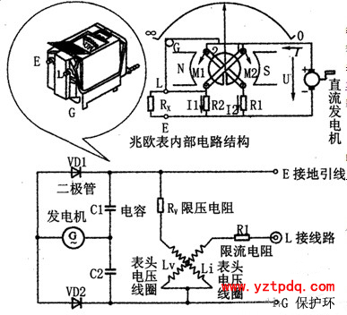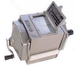 用于測(cè)量高值電阻和絕緣電阻的儀表叫做搖表,現(xiàn)在新型產(chǎn)品通常稱為絕緣電阻測(cè)試儀或者絕緣電阻表,有時(shí)也稱為兆歐表。其中老款搖表的外形如下右圖所示:搖表(絕緣電阻表)主要結(jié)構(gòu)是由手搖發(fā)電機(jī)、電磁式無機(jī)械反作用的表頭組成,對(duì)外有接線柱(L:線路段、E:接地端、G:屏蔽端)。新型的絕緣電阻測(cè)試儀通常和數(shù)字萬用表差不多的外形。