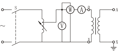 電壓互感器空載勵(lì)磁特性試驗(yàn)接線如圖1-4所示?,F(xiàn)場(chǎng)試驗(yàn)時(shí),電壓互感器高壓側(cè)開路,低壓側(cè)通以額定電壓,讀取其空載電流及空載損耗。