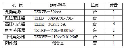 4.1.2.滿足35kV開關(guān)、組合電器、電壓互感器及絕緣子的交流耐壓試驗,試驗時間1min,Z高試驗電壓105kv,試驗頻率50Hz以上。Z大等效電容量為0.01uF。