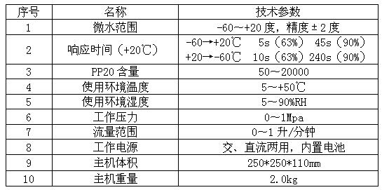 6、在默認(rèn)顯示DI一屏?xí)r,儀器顯示露點(diǎn)、微水、PP20微水、絕對(duì)濕度;第二屏顯示環(huán)境溫度、電池電量、時(shí)間、日期等數(shù)據(jù)。兩屏內(nèi)容瀏覽通過(guò)上下按鍵來(lái)切換。