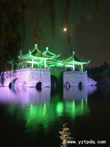揚州曾經被稱為月亮城,一首“天下三分明月夜,二分無賴是揚州”使揚州占去了月亮三分之二的光輝。傳說,中秋夜在揚州的五亭橋可以看到15個月亮。