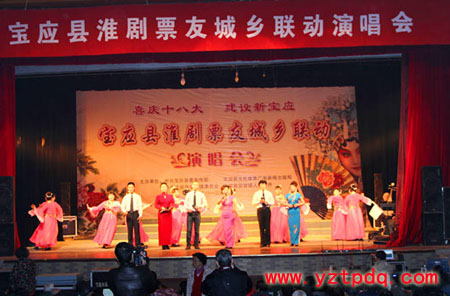 1.     揚州寶應素有淮劇之鄉(xiāng)的美譽。淮劇中有兩大流派,即所謂東路藝術和西路藝術,其西路藝術就源于寶應。查一查新編《縣志》便可看到,一百多年來,許多民間藝術家,在這塊園地中不輟耕耘,為淮劇的孕育、催生和成長、革新灌注了心血和汗水。也許因為是“鄉(xiāng)音”,寶應人不但愛聽淮劇,也愛唱淮劇,尤其酷愛原汁原味的老淮調(diào)。