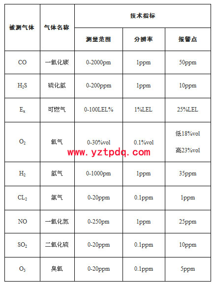 6、 響應(yīng)時間: 氧氣<30S;一氧化碳<40s;可燃氣<20S;硫化氫 <40S (其他略)。