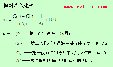 實(shí)踐證明,故障的發(fā)展過程是一個(gè)漸進(jìn)的過程,僅由對油中溶解的氣體含量分析結(jié)果的絕對值很難確定故障的存在和嚴(yán)重程度。因此,為了及時(shí)發(fā)現(xiàn)雖未達(dá)到氣體含量的注意值,但卻有較快的增長速率的低能量潛伏性故障,還必須考慮故障部位的產(chǎn)氣速率。