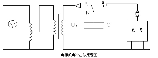 對這種情況,可采用電容沖擊放電法來進行排除。圖4為電容充放電電路,使用時首先合雙向開關K到1側(cè),用直流高壓發(fā)生器對電容C充電,充電后快速把開關K合到2側(cè),對變壓器故障點放電。對1號主變實施了第一次沖擊,有間歇地反復進行了7次沖擊后,測試鐵芯對地絕緣電阻為550MΩ,鐵芯接地故障得到了消除。