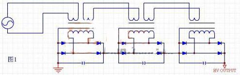 高壓電源最主要的技術(shù)特點,就是在于輸出電壓很高。高的輸出電壓對很多方面提出了特別的要求——元器件耐壓的要求、結(jié)構(gòu)設(shè)計的要求、絕緣材料的要求等。與此同時,電路結(jié)構(gòu)上也有異于通常的結(jié)構(gòu)。通常對于輸出10KV以下的電源,可以直接采用傳統(tǒng)的各種拓?fù)浣Y(jié)構(gòu)。但是對于電壓更高的電源,就要對電路結(jié)構(gòu)作一些修改,以滿足更高電壓的輸出。由于變壓器初級部分的功率器件的耐壓限制,一般驅(qū)動部分依然是傳統(tǒng)的開關(guān)電源拓?fù)?,對電路結(jié)構(gòu)的修改,主要是集中在變壓器以及后面的整流電路上。下面主要對這兩部分進(jìn)行討論。