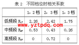 6) 電抗變化對(duì)相關(guān)系數(shù)的影響:筆者曾做過(guò)一次試驗(yàn),夜明珠#1變,型號(hào)為SFZ9-20000/110±8*1.25%/11,表2為分接開(kāi)關(guān)處于1,2,3檔時(shí)的A相頻響曲線相關(guān)系數(shù)。