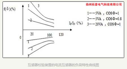 互感器校驗裝置的電流互感器誤差與二次負荷的關(guān)系稱為負荷特性。曲型的負荷特性曲線如圖2所示,隨著二次負荷的增加,I0/I的值也增加電流互感器的比差向負方向變化,角差向正方向變化。當二次負荷的功率因數(shù)減少時,隨著δ角增加,電流互感器的比差和角差都向負方向變化。