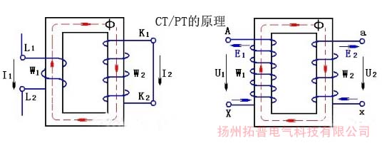 電壓互感器的原理與變壓器相似,如圖所示。一次繞組(高壓繞組)和二次繞組(低壓繞組)繞在同一個(gè)鐵芯上,鐵芯中的磁通為Ф,是用來變換線路上的電壓的設(shè)備。主要是用來給測量儀表和繼電保護(hù)裝置供電,用來測量線路的電壓、功率和電能,或者用來在線路發(fā)生故障時(shí)保護(hù)線路中的貴重設(shè)備、電機(jī)和變壓器,因此電壓互感器的容量很小,一般都只有幾伏安、幾十伏安,大的也不超過一千伏安。