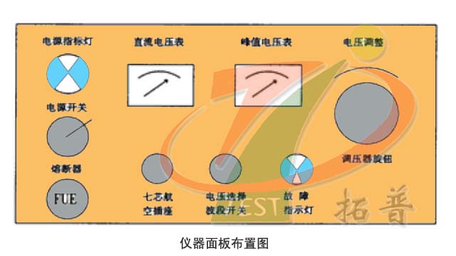 3.將儀器面板上的“電壓調(diào)整”旋鈕向左旋到底(旋不動為止),保證開機前調(diào)壓器輸出電壓為零,然后將儀器電源插頭插好,并接通儀器面板上的電源開關(guān).此時電源指示燈(綠色)亮,直流電壓表和峰值電壓表均在另位。